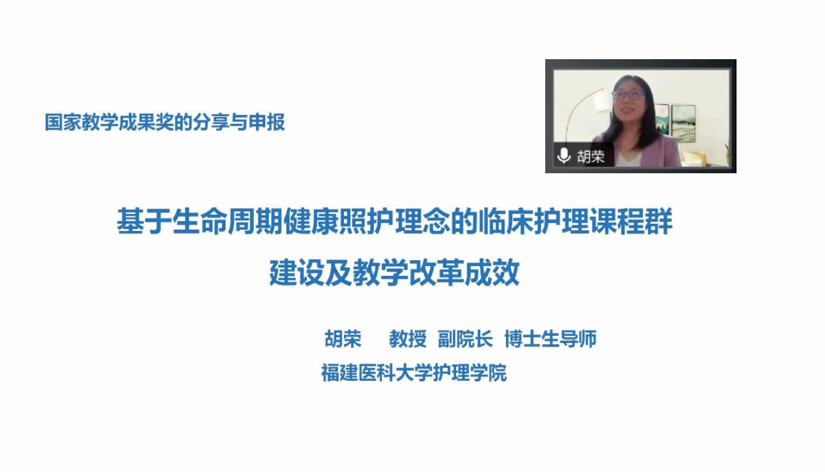 副院长胡荣教授开展题为“国家级教学成果分享与申报-基于生命周期健康照护理念的临床护理课程群建设及教学改革成效”的专题报告。我校糖心视频