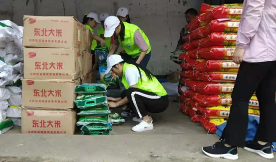 在粮仓帮忙搬运救灾物资,很累,但是想着这些物资可以给那些受灾的村民带去希望,就很开心。虽然我们帮不了什么大忙,但是能尽自己的一份力量投入到救灾工作中,真的很幸福。