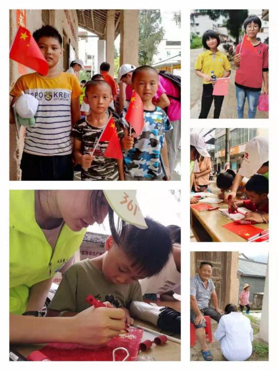 (4)关爱留守儿童:组织聚集龙川县留守儿童,开展留守儿童“同画一面国旗”、“同唱一首红歌”、“同诵一首经典”等活动,鼓励留守儿童自立自强,培养爱国主义情操;