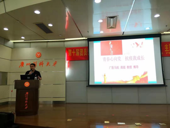 龚超教授结合实际事例讲述广医在本次抗疫战争中所表现出来的责任和担当。分别从新冠疫情对国内外的影响,从中西方疫情防治看“中国之制”与“中国之治”的优越性以及青年大学生的历史使命与责任担当三个方面进行阐述。从多个角度剖析,生动地给我们讲述了这次特殊的新冠给我们带来的启示。他更勉励同学们要树立远大理想,担当时代责任,强调“一代人有一代人的使命,一代人有一代人的担当。”