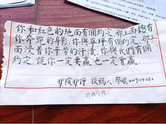 运动员选手们发扬运动精神,在绿茵场上挥洒着拼搏的汗水,争取荣誉,为护院争光,未参赛的同学也热情洋溢,为选手们送祝福送鼓励,做好后勤保障事宜。