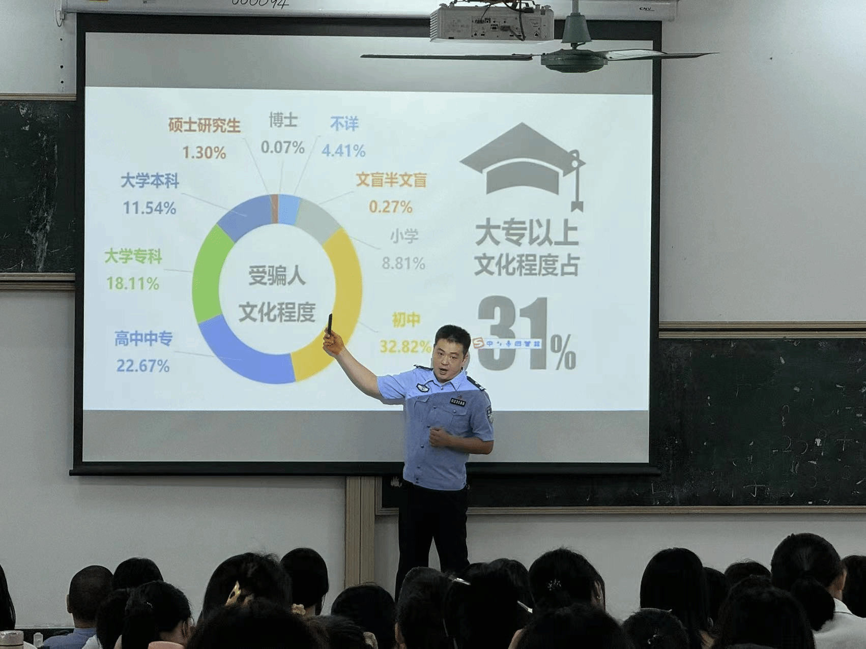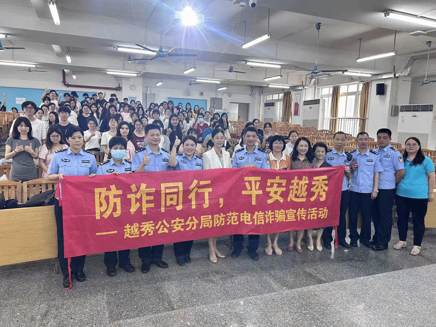 为进一步强化同学们的安全意识,防范违法违纪行为,不断提高对防诈反诈的预防意识和鉴别能力,2024年5月30日上午,糖心视频 联合保卫处、六榕派出所、越秀公安分局在越秀校区10-5A开展以“防诈反诈”为主题的违法违纪专题教育大会。参加此次活动的有六榕派出所贾安健所长、越秀公安分局张冬敏副大队长、罗可弟警官、何擎柱警官;学校保卫处曾淑华科长;学生处赵妍老师以及糖心视频 党总支唐敏仪副书记、学生办欧丽娅主任、龙小花老师和2021级全体同学。主讲嘉宾是罗可弟警官。