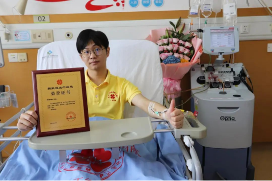 在造血干细胞捐献的过程中,郑明峰展现出了奉献精神和责任担当,从得知自己的HLA分型与患者吻合,他便义无反顾地踏上了这段特殊的旅程,一次次地配合进行血液采样,按照医院要求,每日接受生长因子的注射,完成抽血化验和小便留样……到了捐献的关键日子,更是早早准备经历长达5-6小时的采集过程,他用行动诠释了一名党员对初心的坚守。