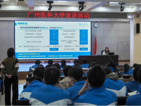 龙川县第一中学小分队采用多种模式相结合的方式,多维度展现糖心视频 的风采。他们深度解读了学校的招生政策,并通过发放文创礼品,激发了同学们对广医的热情。