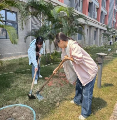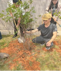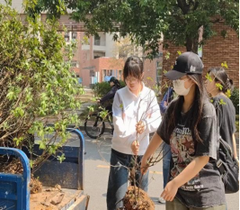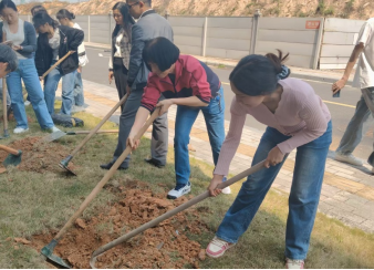 在老师们的带领下,队伍分工明确,配合默契。大家齐心协力,将一株株小树苗从紫荆山搬至立信苑宿舍周边的种植区。