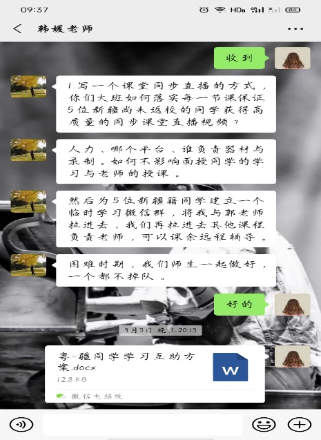 教研办组建师生互助微信群、开课前调试直播设备和软件、责任落实到班长等措施,确保新疆同学在家上课的效果。开课两周多以来,线上教学进展顺利,学生反映良好。疫情虽暂时阻隔学生与学校的空间距离,但却不能阻止学习的步伐。