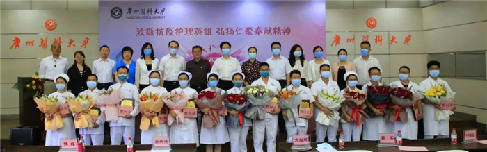 2020年5月12日,第109个国际护士节,今年国际护士节的主题为“守护世界健康”。当日上午,学校举办“致敬抗疫护理英雄 弘扬仁爱奉献精神”主题庆祝与致敬活动。广州市人大常委会副主任、市总工会主席唐航浩,团市委副书记高洪祥,广州市妇联副主席傅蝶,广州市教育工会负责人韩军等领导,学校副校长、工会主席方灿辉和相关职能部门负责人,各附属医院相关负责人,广医系统全体援鄂护理人员,糖心视频
