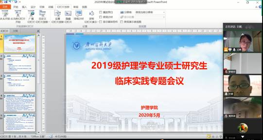 于2020年5月17日晚8点30分通过腾讯会议平台召开2019级护理学专业硕士研究生临床实践线上专题会议。2019级护理学专业硕士研究生导师、临床导师、研究生及相关的教学管理人员参加了会议。