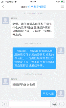 (4)讨论答疑 采用学习通、微信、QQ等多途径进行讨论答疑,解决护生学习中的困惑与困难。互动活跃,师生参与度高;