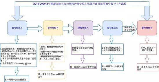 首先,疫情防控期的在线学习不等同于“放养”、“散养”,更要严控教学质量,本课程由督导专家-课程负责人-授课教师携手打造,课程负责人收集教学资源后提前一周传上平台,院级督导初步审核并给出建议后,课程负责人与授课教师协商后进行有针对性整改,整改结果呈报督导终审。确保教学资源完整、适宜。