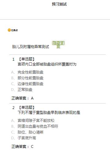 (6)章节测验 从本教学团队自建题库中选题,并请授课教师补充妇产科护理学相关测试题,用形成性评价的模式促进学生学习,其中试题题型多样化,包括单选、多选、填空、判断、名词解释、解答题。并且设置学生提交后可以观看答案,以考促学。教师及时批阅答案,对于学习效果欠理想的学生,设置教学预警提示。