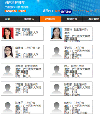 3.整合院校-附院资源 广医三院产科以诊治妊娠期复杂、疑难、危重病临床救治为重点、集医疗、科研、教学为一体的具有相当规模的现代医学专科体系的“国家临床(产科)重点项目单位”,拥有广东省重症孕产妇救治中心、广东省产科重大疾病重点实验室、广东省产科临床质量控制中心。设有妇产科研究所,妇产科实力雄厚,特色鲜明。本课程整合院校-附院临床、科研、师资立体资源搭建在线教学平台,师资结构合理,对课程的顺利设置有师资保障。