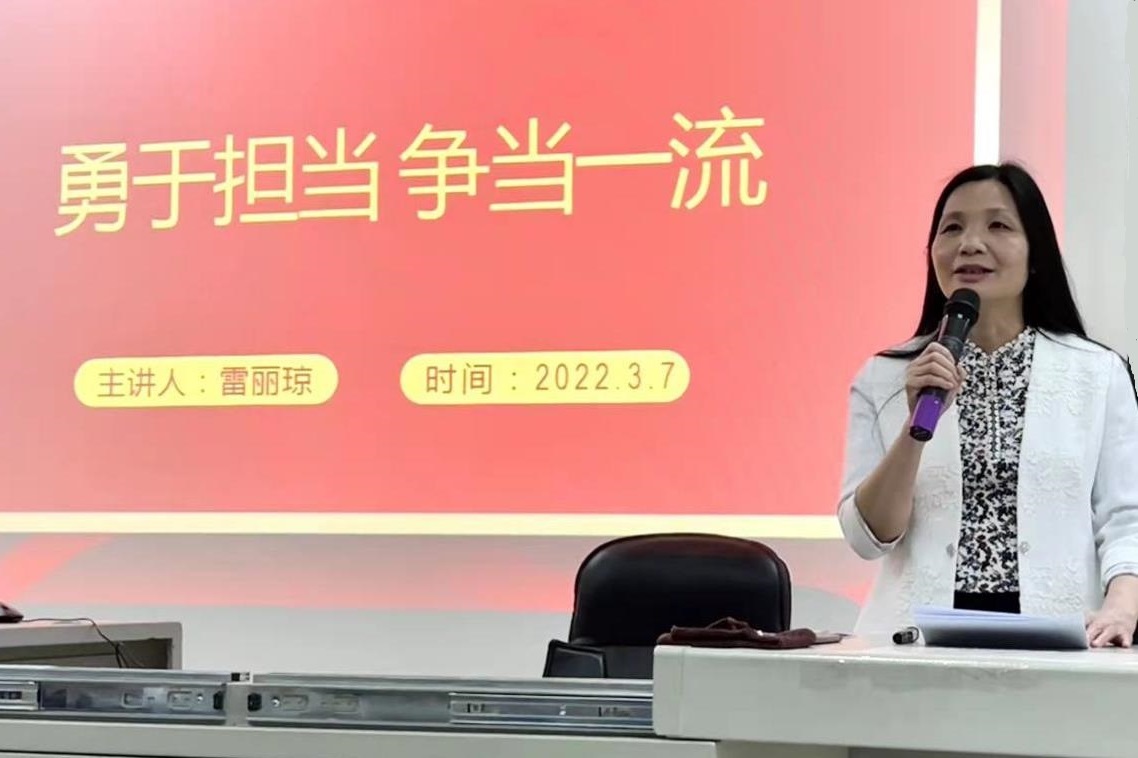 党总支雷丽琼书记于3月7日晚为2021级全体本科生讲授了题为《勇于担当 争当一流》的思政第一课。