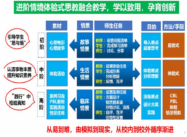 《护理心理学》是护理学专业必修课程,是我校首批国家级一流线下课程,广东省一流线下课程,广东省课程思政示范课程,课程团队成员有周英教授、高云副教授、苏茜副教授、王丽芳副教授、唐秋碧主管护师(附属脑科医院护理部副主任)。该课程始终坚持以立德树人为根本任务,以学生为中心,以积极心理学和 OBE 理念为指导, 结合传统教学中“忽视价值引领、人文关怀及护士职业心理素质的培养”、“学生识别和解决患者心理问题能力不足”等痛点,将“学生特点”、“教学痛点”、“课程知识点”、“思政点”四点合一,以学生在学习生活中的实际问题为切入点创设分阶段情境,将不同情境“对应”课程知识点,在课程各教学单元,采用全程进阶式思政融合模式,将思政资源融入问题清单,增强学生对思政元素的感悟和体验。