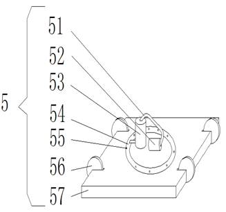 他设计的垃圾桶,当垃圾被取走后,气泵52运转对消毒剂储存盒53加压使消毒剂储存盒53内部的压力加大,使内部消毒液进入环形喷管54从喷嘴55喷出,进行喷雾杀菌;通过自动推杆6的运转伸缩可以使基板57进行上下移动,实现垃圾桶内部的全方位消毒。(见图15-16))