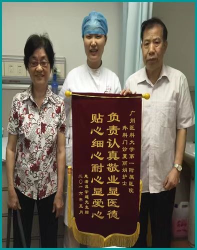 附属第一医院到现在已经30个春夏秋冬,秉承母校广医人的脚踏实地、开拓进取的精神,在护理这个平凡的工作岗位上,一步一个脚印地扎实打基础、孜孜不倦地学习求进取, 2009年荣幸的获得中山大学造口治疗师学校学习的机会,成为了一名国际造口治疗师,从一名青涩求知的年轻护士,转眼已经成为一名具有扎实的专业理论知识、娴熟的护理技能、丰富的临床经验的“老”护士。自信、稳重是她的外表,细致、热情、严谨是她的核心。而她,就是我们优秀的专科护士--夏丽娟。